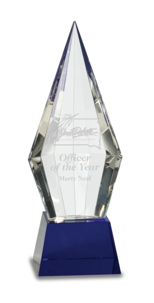 Premier Crystal Faceted Obelisk Mounted On Blue Crystal Pedestal Awards Apparel Trophies Gifts Trophy